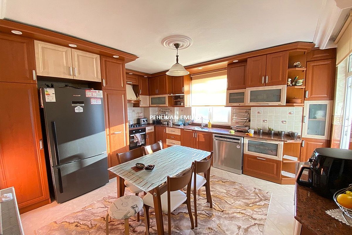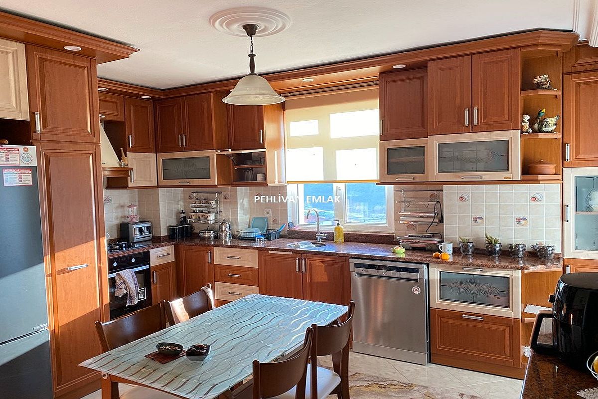 Toplamda 280 m2, 5+2 kullanım alanlı, oldukça büyük teraslı, müthiş deniz, panoramik şehir ve doğa manzaralı, çift girişli bir dublekstir.